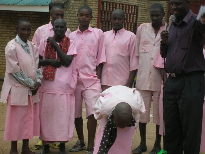 We were then led to the outdoor compound area, and ushered through the actual prisoners, with Guards round about. All 3,000 prisoners (males and females) were dressed in their pink prison uniform and were located to the right and the 600 family members who were separated by a thin rope, were to the left. They was no singing. No atmosphere. Just curiosity, anticipation and expectation by everyone, about these visitors from abroad.