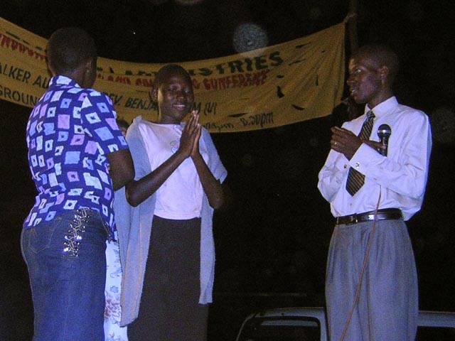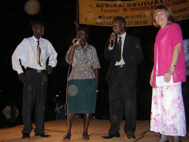 I have been praying for long, but I felt as if my prayers were knocking against a certain wall. On Friday 28 October 2005 I was on my way to Kampala and I heard the praising songs. Then the Holy Spirit convicted me to branch off to the crusade, and I did so. Very soon after the praising I saw something like a shadow running out of me and from then I feel free and I can pray very well and get the breakthrough.